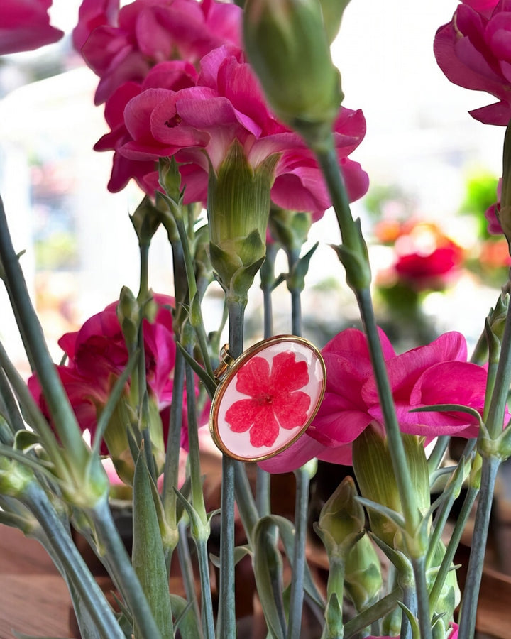 Cada pieza es única, nuestros anillos están hechos a mano con flores naturales preservadas, por eso pueden variar ligeramente del que ves en la foto. La esencia y el estilo se mantienen, pero ningún anillo será exactamente igual a otro.