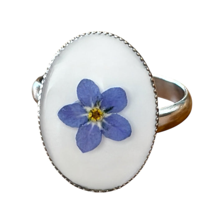 Nuestros anillos están hechos a mano con flores naturales preservadas, por eso pueden variar ligeramente del que ves en la foto. La esencia y el estilo se mantienen, pero ningún anillo será exactamente igual a otro.