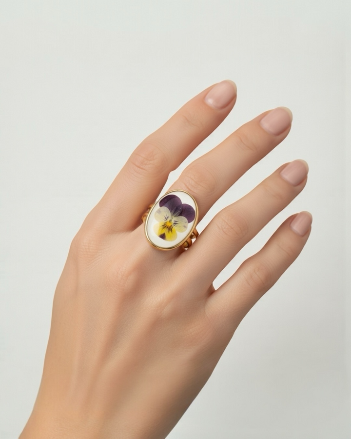 Cada pieza es única, nuestros anillos están hechos a mano con flores naturales preservadas, por eso pueden variar ligeramente del que ves en la foto. La esencia y el estilo se mantienen, pero ningún anillo será exactamente igual a otro.