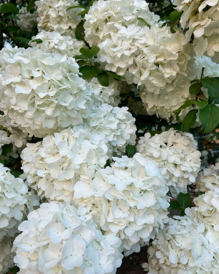 Hortensia blanca sobre fondo rosa pastel.